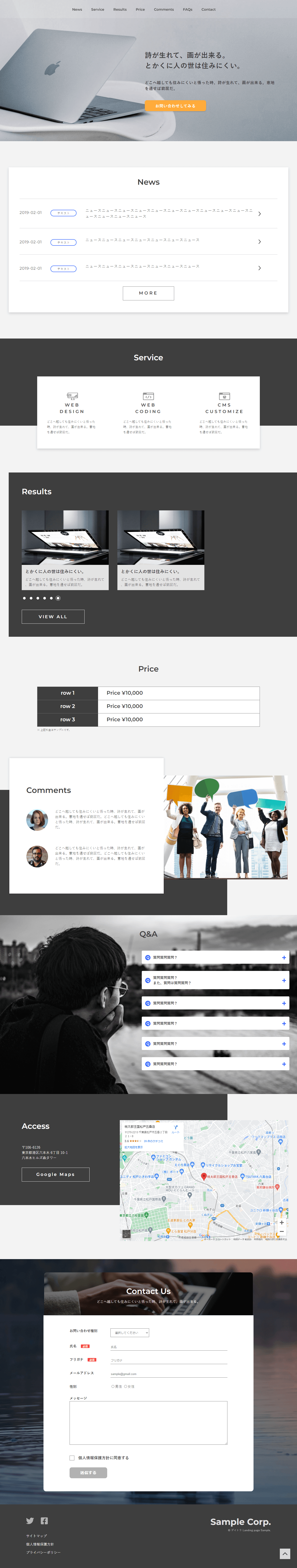 スライダーやアコーディオン、コンタクトフォームなどを実装したLPです。